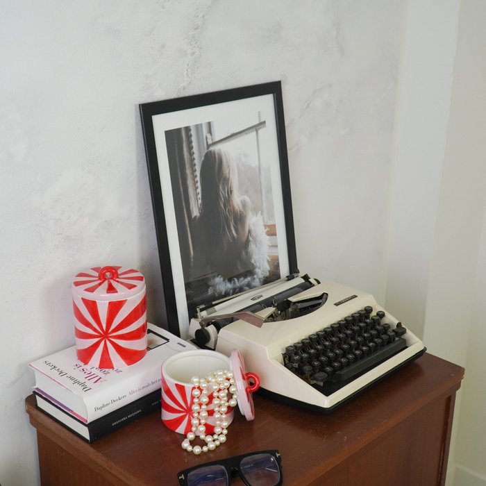 Deco Jar - Swirl - Dolomite - Red/Pink - 11x11x14,5cm