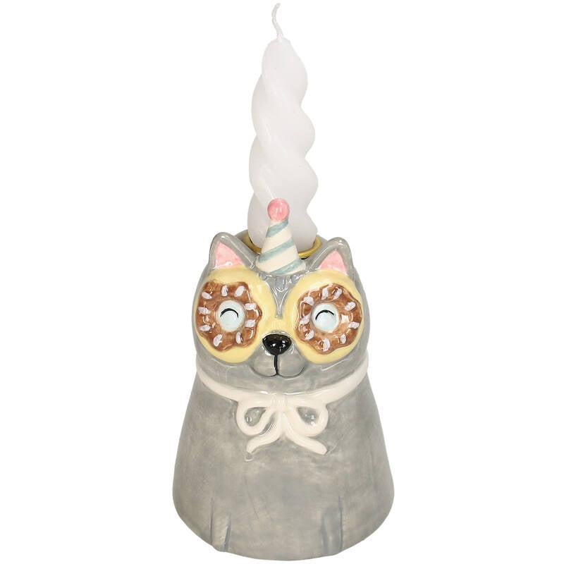 Kandelaar Kat Dolomiet grijs 7x7x14,5cm